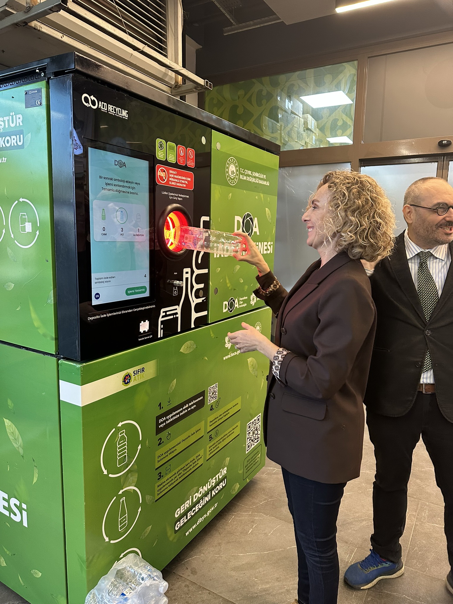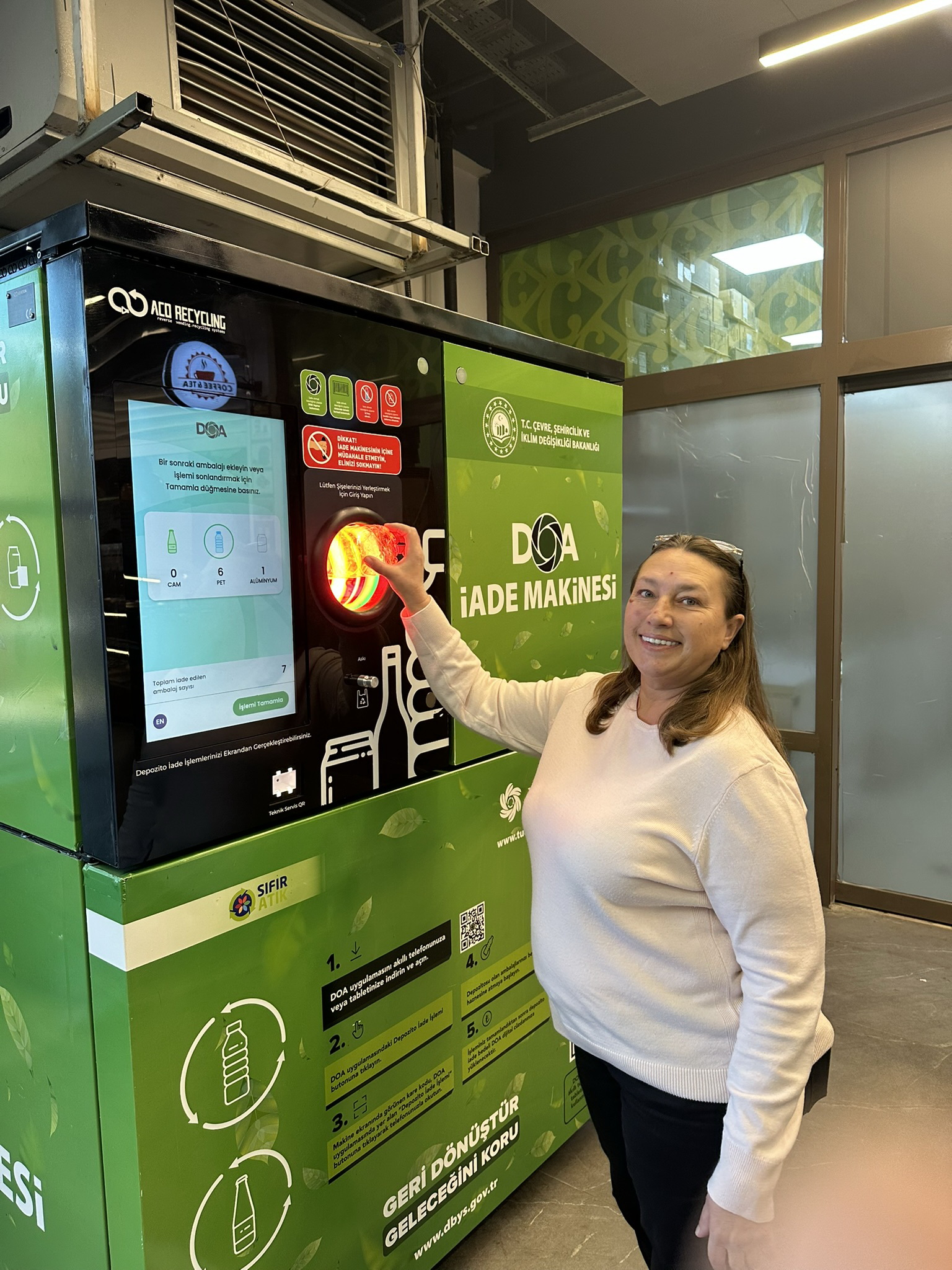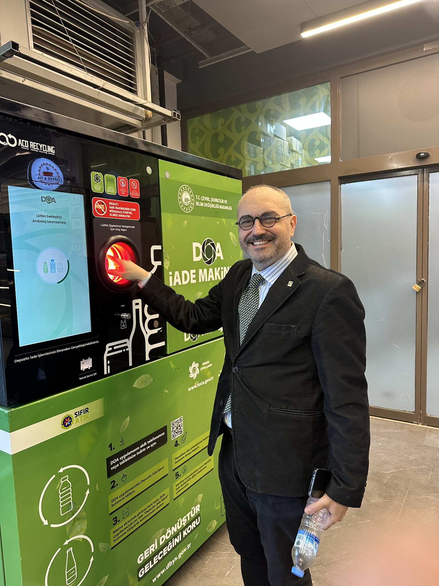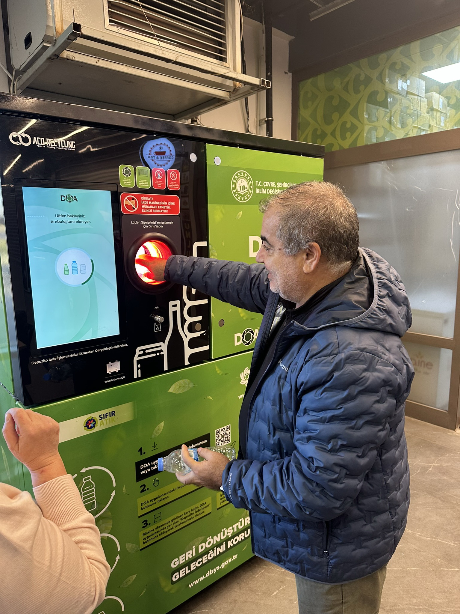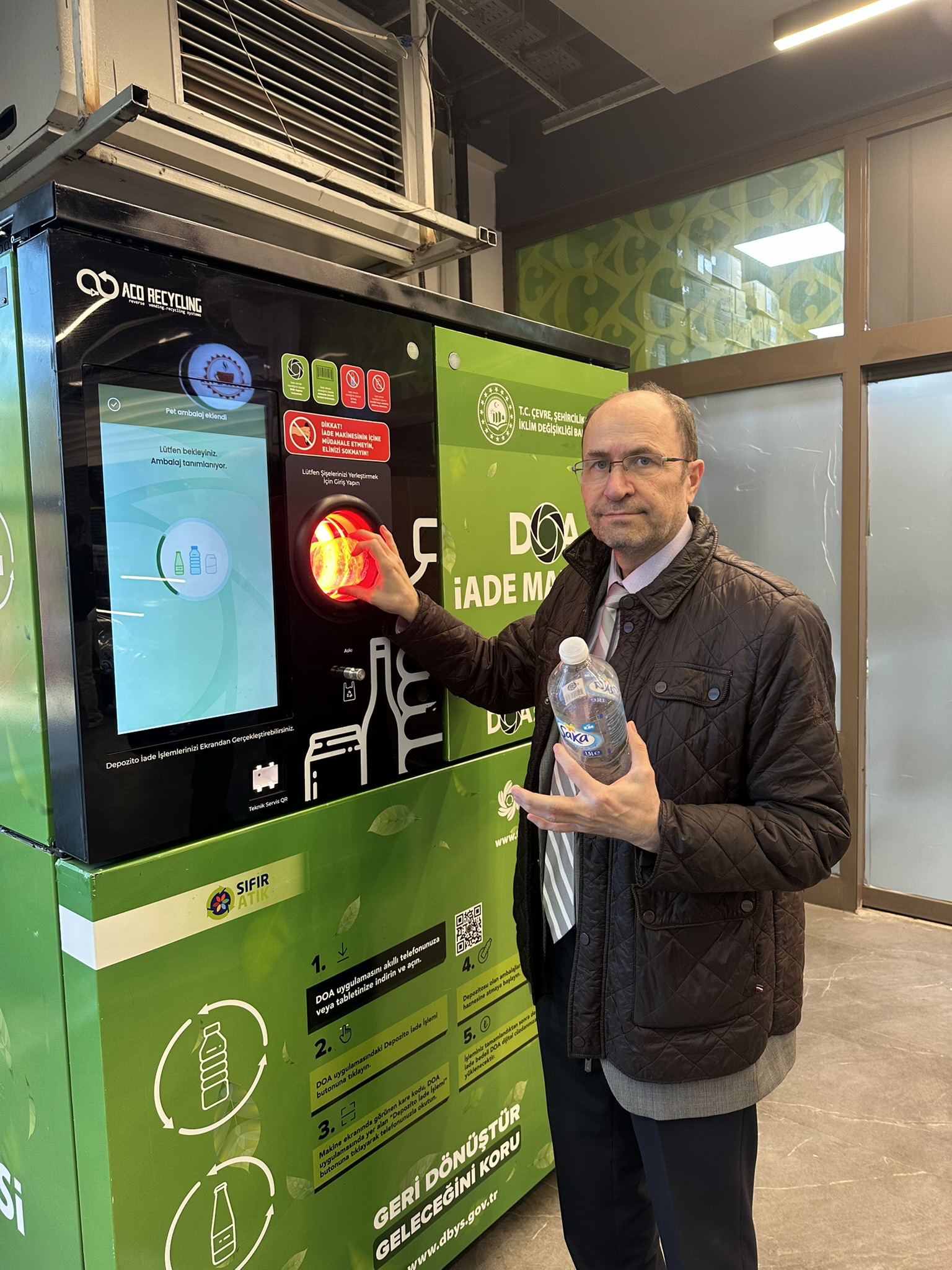 Enstitümüz Sıfır Atık Komisyonu olarak akademik ve idari personelimizle birlikte 12.12.2025 tarihinde 11:30’da Aktivite merkezinde yer alan DOA ambalaj toplama noktasına, üzerinde DOA logosu olan biriktirmiş olduğumuz plastik veya cam şişeleri DOA ambalaj toplama makinasına atarak ambalaj dönüşüme katkı sağladık.