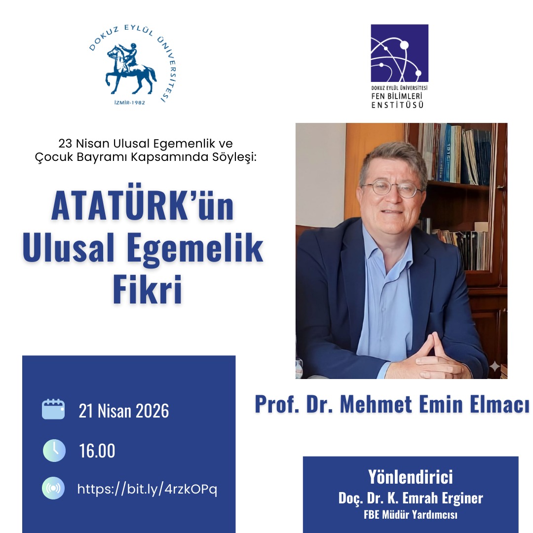 | Fen Bilimleri Enstitüsü | Doç.Dr. Kadir Emrah ERGİNER | Prof. Dr. Mehmet Emin ELMACI | ATATÜRK’ün Ulusal Egemenlik Fikri | 21.04.2026 | 16:00 | https://meet.google.com/sya-xicn-nae | ![]() |